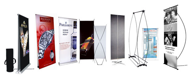 Мобильные стенды относятся к категории натяжных рекламных конструкций. Они широко используются в закрытых помещениях, а при благоприятных погодных условиях — и на открытом воздухе. Установить переносной баннер может даже неподготовленный человек. Для этого не потребуются специальные приспособления или инструменты, а все манипуляции займут всего несколько минут. Особенности конструкцийВ качестве основы изделий используются надежные и упругие металлические конструкции. В большинстве случаев они имеют Х-, L- или Y-образную форму. Кроме того, возможны более сложные решения (в виде баннерной ширмы). Металлический каркас имеет небольшие ножки, которые упираются в пол. Грамотное распределение центра тяжести обеспечивает устойчивость мобильного стенда фактически на любой поверхности. Полотно крепится к каркасу при помощи люверсов, через которые протягивается веревка. Оптимальное натяжение баннера гарантирует его идеальную плоскость, без искажений или провисаний. Отдельного внимания заслуживают роллерные модели, которые могут устанавливаться на ножках или подвешиваться на стене (как экран). Такие конструкции оборудуются пружинным механизмом, позволяющим быстро менять баннеры без вреда для полотна. Рекламная картинка может печататься с одной или двух сторон. Преимущества мобильных стендов: